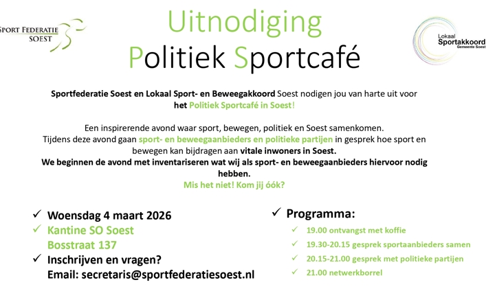 Zoek je een sportclub? In Soest en Soesterberg zijn er meer dan 40 actief. Van binnen- tot buitensport, recreatief of competatief, geschikt voor jonge, oude(re), beginnende of ervaren sporters - het is er allemaal.